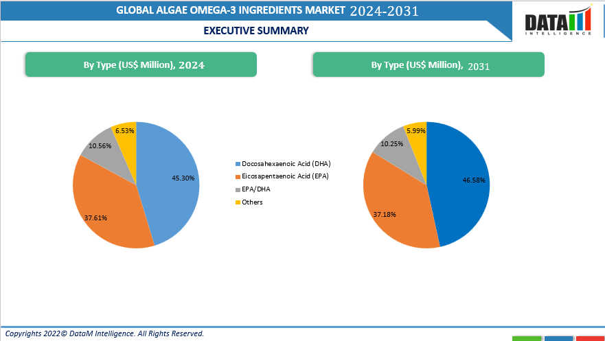 The docosahexaenoic Acid (DHA) segment is expected to dominate the global algae omega-3 ingredients market, by type