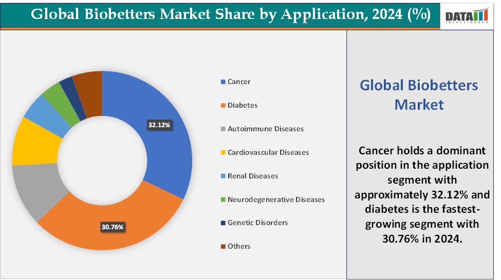 Diabetes is the fastest-growing segment in the bio betters market, with a 30.76% share in 2024
