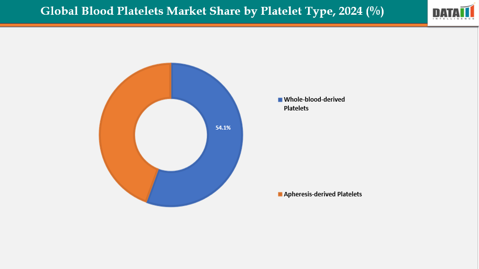 Platelet Type: The whole-blood-derived platelets from platelet type segment to dominate the blood platelets market with a 45.1% share in 2024