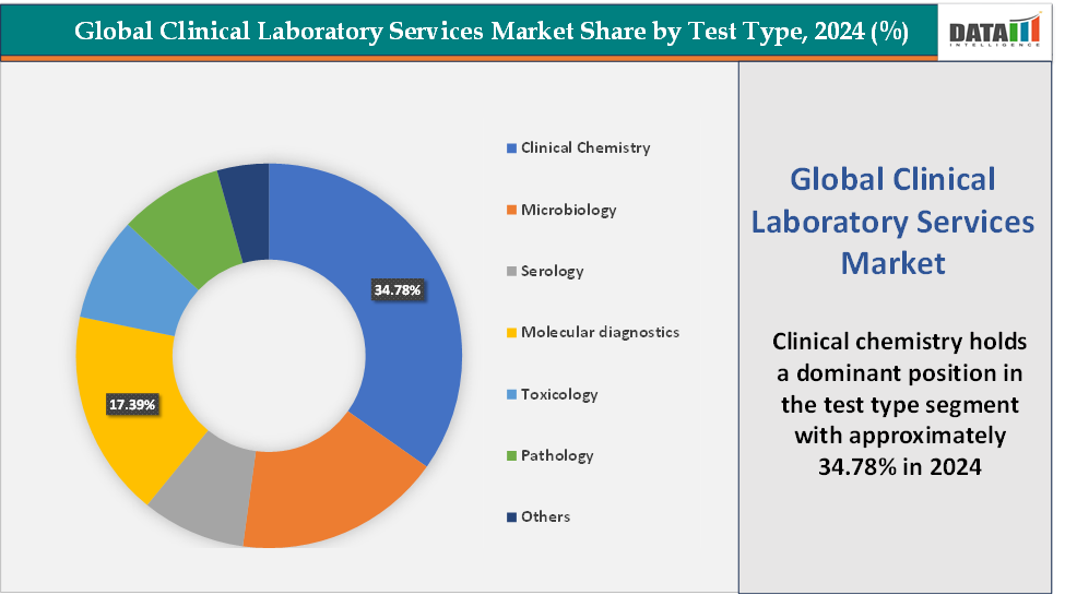 Test Type: The clinical chemistry segment is dominating the clinical laboratory services market with a 34.78% share in 2024