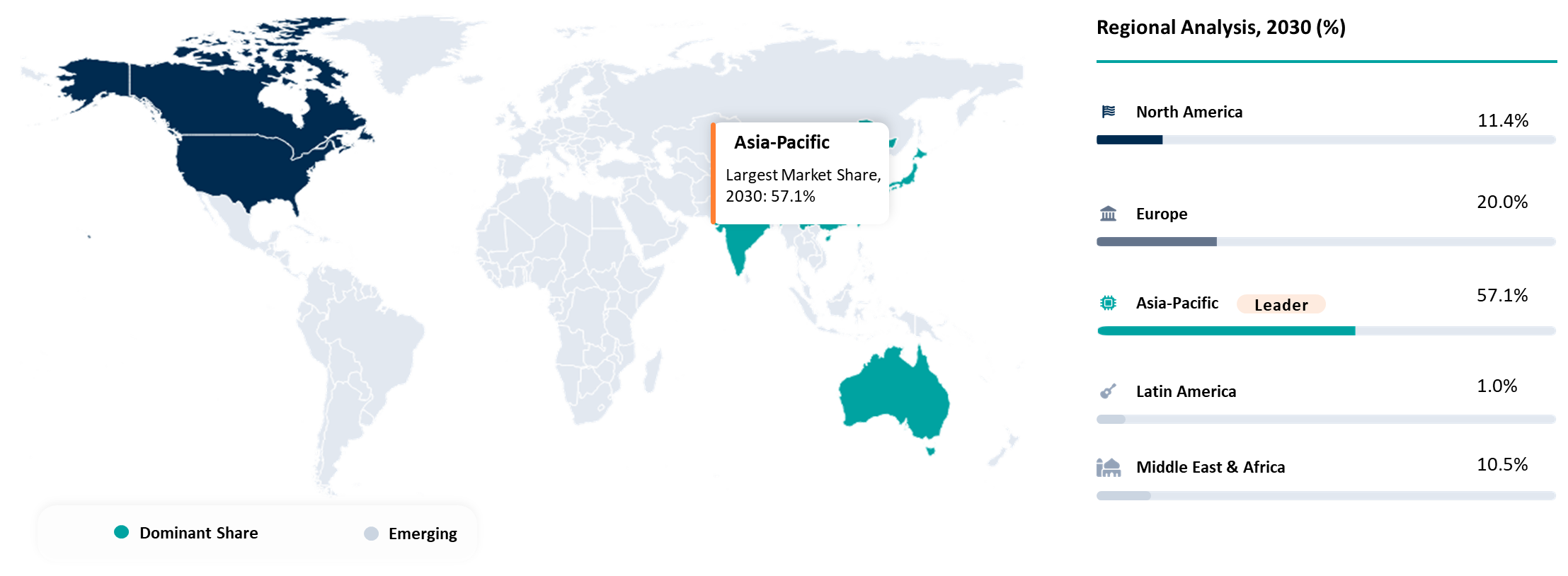 Asia-Pacific flying cars market is the largest market globally, accounting for around ~53% of the total market in 2030.