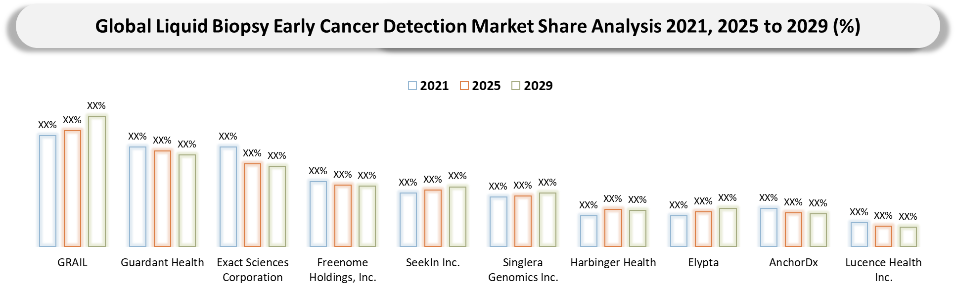 - The liquid biopsy early cancer detection market is driven primarily by innovation and comprises several types of stakeholders including multi-cancer early detection firms, blood-based cancer screening firms, and biomarker platforms providers. The leading players in this market include GRAIL, Guardant Health, Exact Sciences Corporation, and Freenome Holdings, Inc. who are driving the development of the market in terms of commercialization and implementation of blood-based early cancer detection. The competition in this market is characterized by advancements in methylation testing, next generation sequencing, multi-omics approach, and bioinformatics via artificial intelligence technologies.