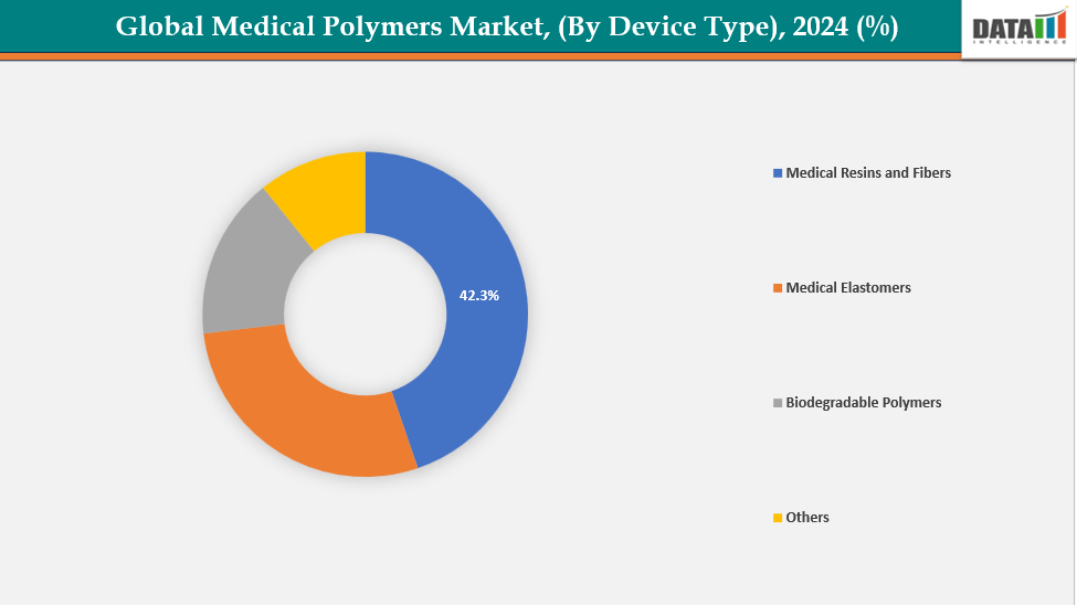 By Product Type: The medical resins and fibers segment is dominating the medical polymers market with a 42.3% share in 2024