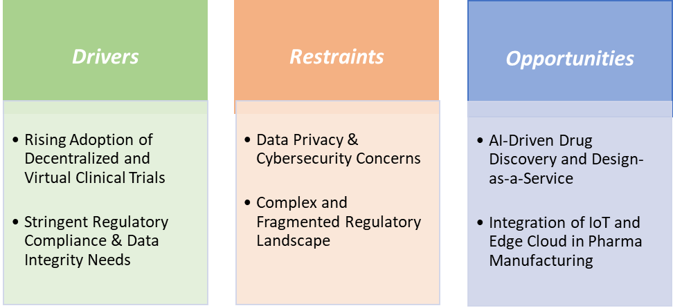 Data privacy and cybersecurity concerns are major factors hampering the growth of the pharma cloud services market, as pharmaceutical companies manage vast volumes of highly sensitive data including clinical trial results, patient health records, and proprietary drug formulations. The sector has become a prime target for cyberattacks. Cloud misconfigurations, hybrid IT ecosystems, and third-party integrations often create vulnerabilities that malicious actors exploit.