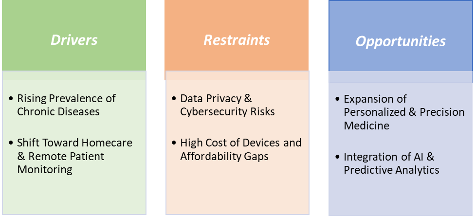 The presence of regional innovators like Samsung (South Korea) and strong partnerships with global and emerging players are further boosting accessibility and affordability. For instance, in February 2025, MediBuddy, announced a strategic partnership with ELECOM, a Japanese electronics company, to jointly develop and introduce smart health IOT devices to the Indian market. With India experiencing a rapid rise in lifestyle-related diseases, causing 6 million fatalities annually, ELECOM aims to safeguard health by merging digital technology with healthcare products to deliver optimal solutions.
