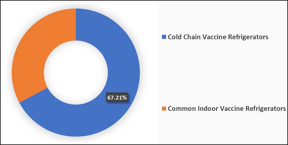 Type-The cold chain vaccine refrigerators segment is dominating the vaccine refrigerators market with a 67.21% share in 2024